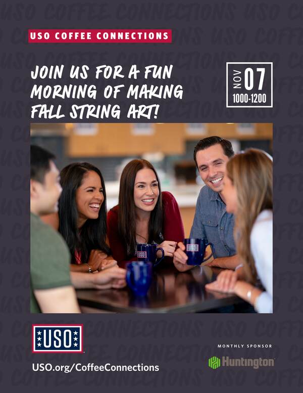 The staff and volunteers will host a cozy gathering designed for military spouses to connect, network, and share experiences over a cup of coffee. This is a wonderful opportunity to exchange advice, discuss local events, and make new friends in a relaxed atmosphere. Unleash your creativity as you craft beautiful, fall-themed string art pieces—perfect for decorating your space this season. Registration is required. Ages 18+ only. We look forward to seeing you there! #theUSO