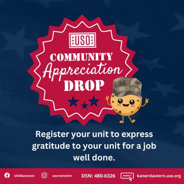 Do you know a unit here at Ramstein Air Base that deserves recognition for their dedication and hard work? Nominate them now for a chance to receive a small token of our gratitude. Nominate a unit by clicking the link: https://bit.ly/rmscommunitydrop Thank you for your continued support and for making Ramstein Air Base an incredible place to be. #theUSO