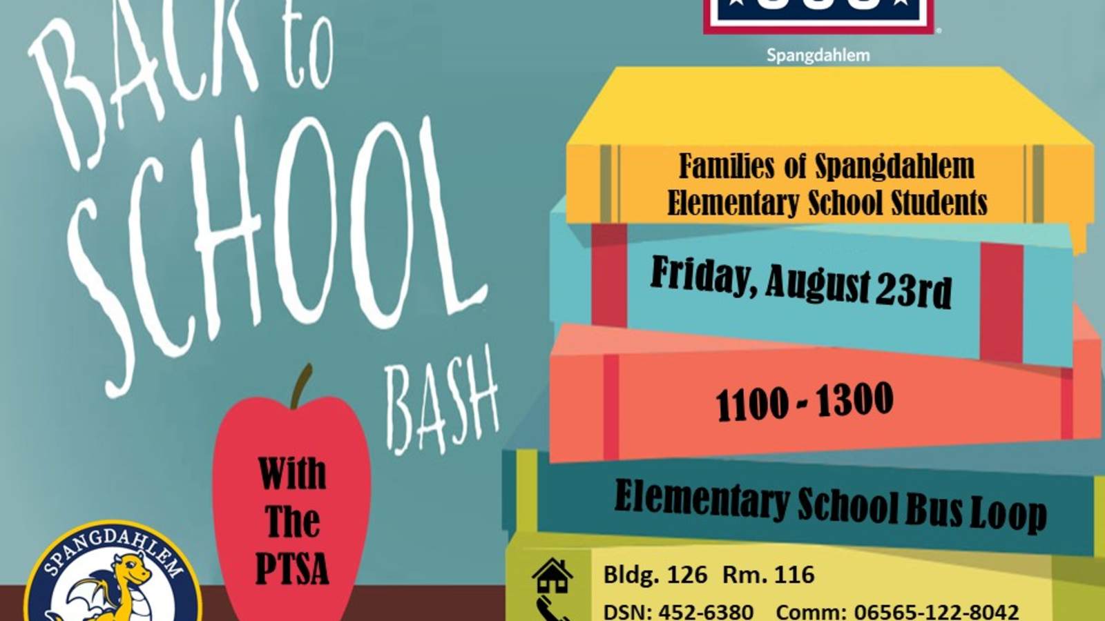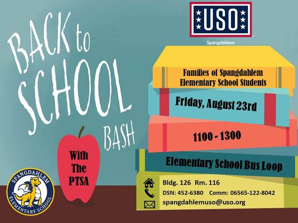 Spangdahlem USO is partnering with the Elementary School PTSA to host the Back to School Bash!